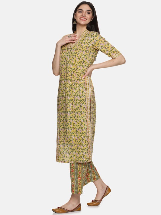 LEMON YELLOW FLORAL PRINT KURTA PLAZZO SET