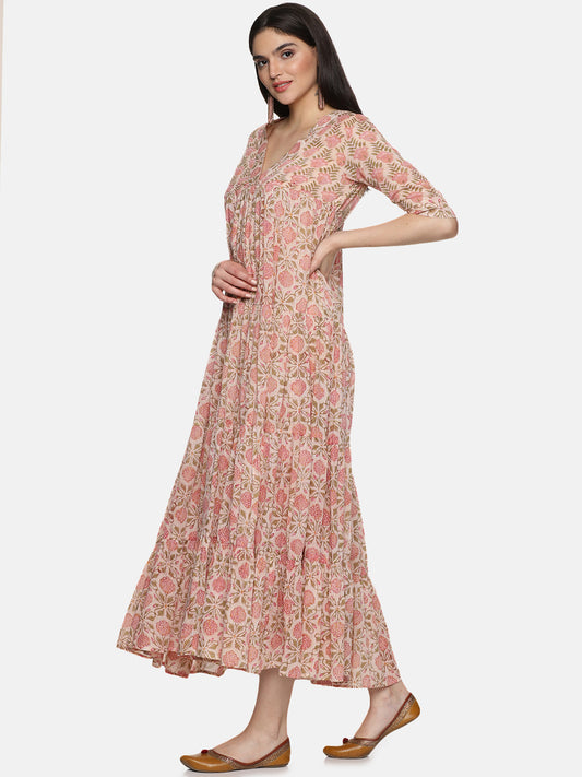 PEACH BLOCK PRINT DRESS