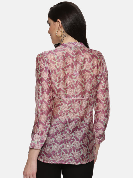 PURPLE FLORAL BLOCK PRINT SHIRT IN CHANDERI