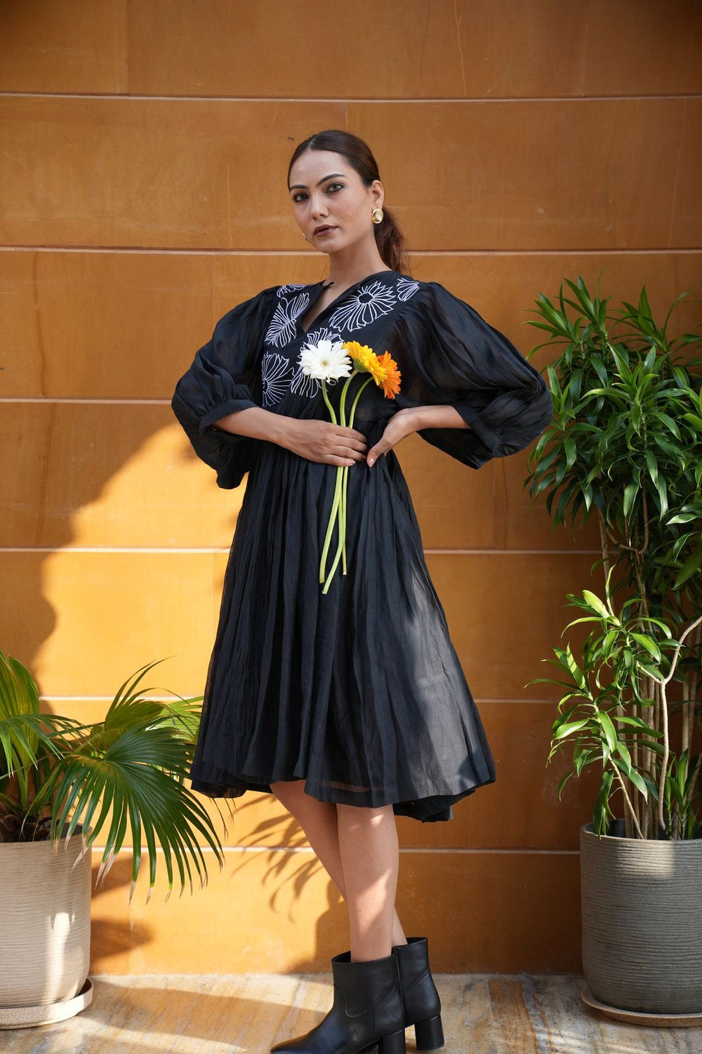 Elegant and timeless, the Chanderi Black Knee-Length Frock by Jaipuri Banno blends traditional charm with modern style. Crafted from lightweight Chanderi fabric, it features intricate detailing and a flattering silhouette, perfect for festive occasions or casual gatherings. Comfortable, graceful, and effortlessly chic.