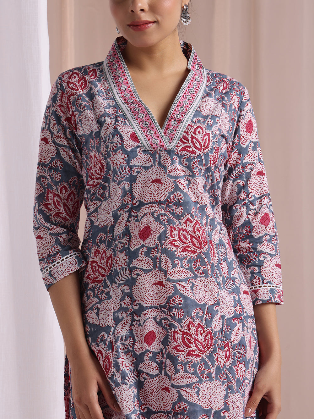 The Blue-Red Block Print Kurta Set features a vibrant combination of blue and red, with intricate block print designs on the kurta. Made from soft cotton, the set includes a comfortable, relaxed-fit kurta with three-quarter sleeves and matching lined pants for a stylish, coordinated look. Perfect for casual or festive occasions, this set blends traditional block print artistry with contemporary flair.