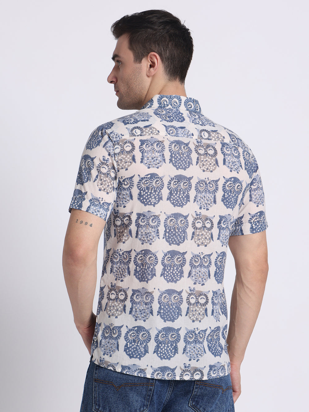 A blue-white block print men's shirt features a striking combination of blue and white hues, with intricate patterns created using traditional block printing methods. The crisp white fabric serves as a canvas for detailed blue motifs, often showcasing floral, geometric, or ethnic designs. This shirt offers a blend of contemporary style and artisanal craftsmanship, making it perfect for both casual and semi-formal occasions. The lightweight material ensures comfort, while the block print adds a unique, cultural touch to the modern design.