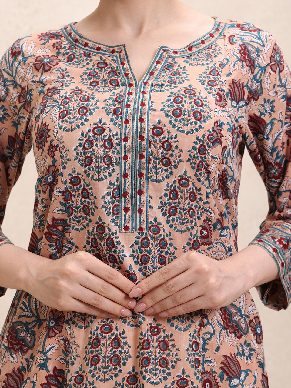 Jaipuri Banno stunning Brown Princess Line Suit with Round V-Neck and Kota Doriya Dupatta. This elegant ensemble combines classic style with intricate details, perfect for making a statement at any occasion.