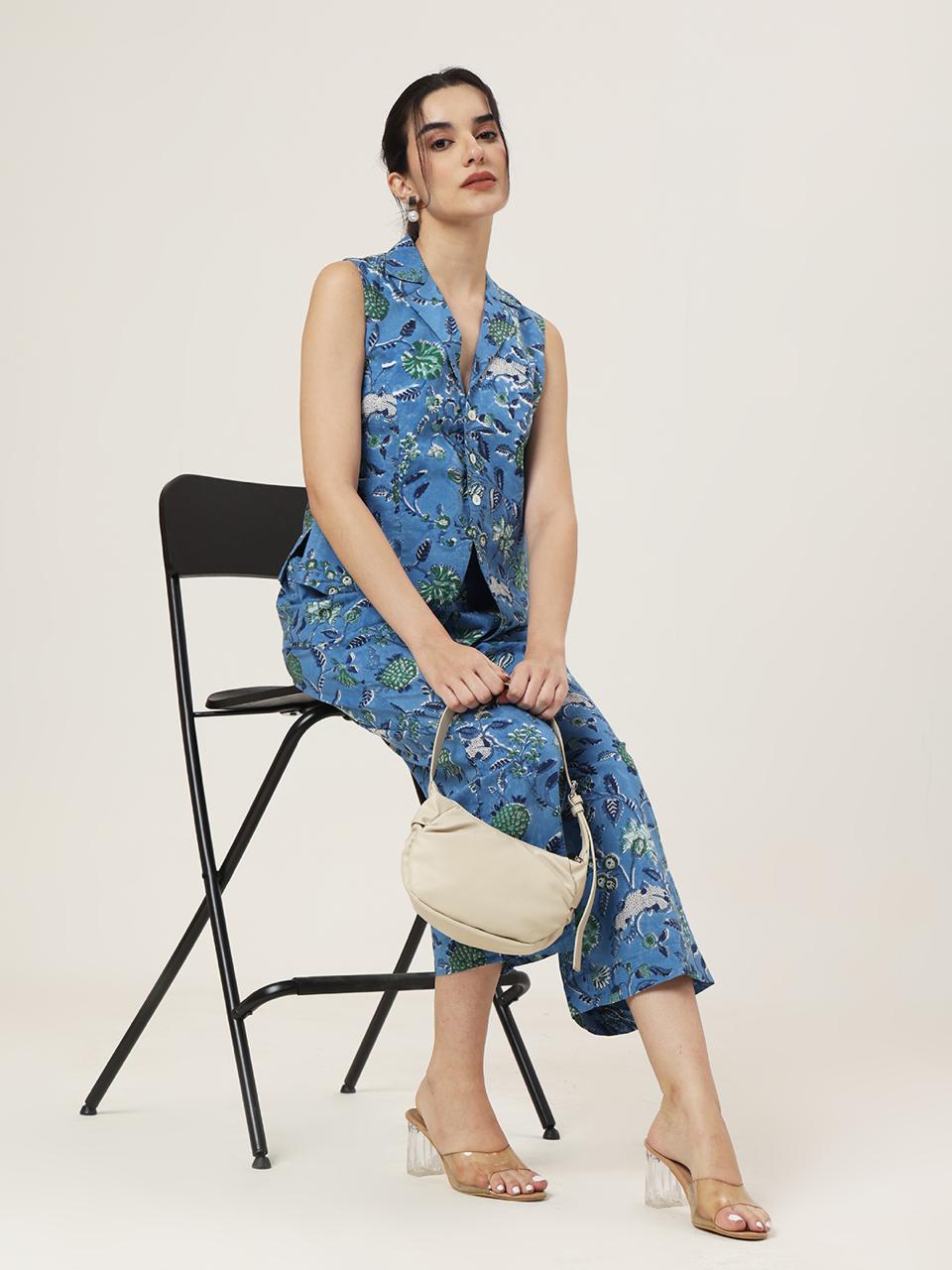 Introducing “Firangi” – the dark blue 2-piece co-ord set by Jaipuri Banno, a perfect blend of elegance and edge. This chic ensemble features a stylish jacket paired with coordinated pants, offering effortless sophistication for any occasion. Crafted with premium fabric, it ensures both comfort and a flattering fit. Whether it’s a brunch date or an evening outing, the Firangi Set adds a bold, modern twist to traditional charm. Step out in style and let your outfit do the talking!