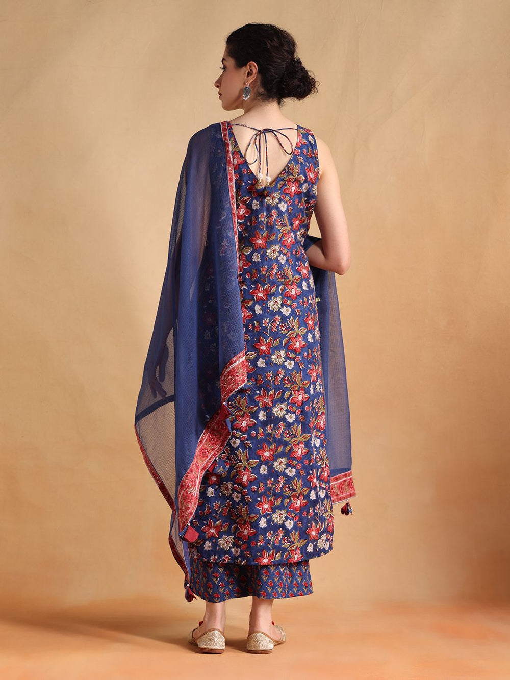 Elevate your ethnic style with Jaipuri Banno stunning dark blue kota doriya dupatta sleeveless suit with V-neck. The intricate Kota doriya pattern on the dupatta adds a touch of elegance, while the sleeveless suit provides a modern twist. Perfect for festive occasions or special events, this outfit is sure to make you stand out. Pair it with statement jewelry and heels for a glamorous look.