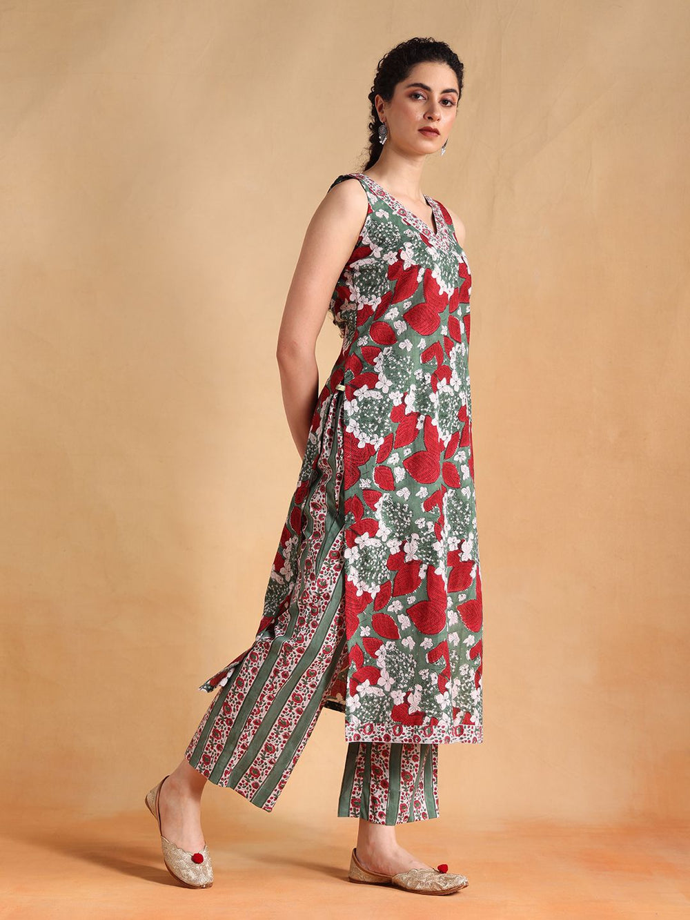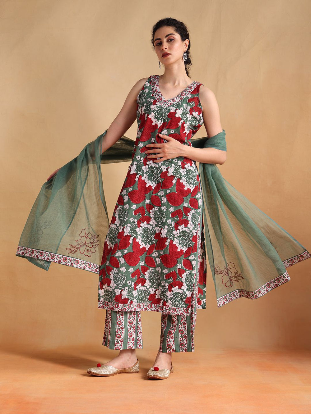 Elevate your ethnic style with our stunning dark green Kota doriya dupatta sleeveless suit with V-neck! Perfect for any occasion, this beautiful ensemble features intricate Kota fabric and a stylish V-neck design. Pair it with statement jewelry and you're all set to shine