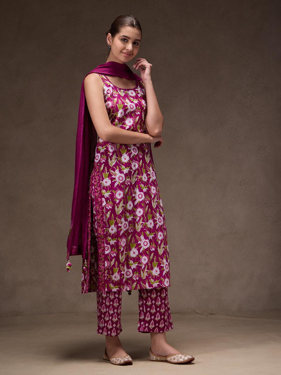 Elevate your everyday style with Jaipuri Banno’s latest deep purple sleeveless suit, crafted in pure cotton for unmatched comfort and breathability. Designed to keep you effortlessly stylish, this piece offers a perfect blend of elegance and ease. The rich hue adds a touch of sophistication, making it ideal for both casual outings and day events. Tailored for a flattering fit, it ensures you feel confident and comfortable all day long.