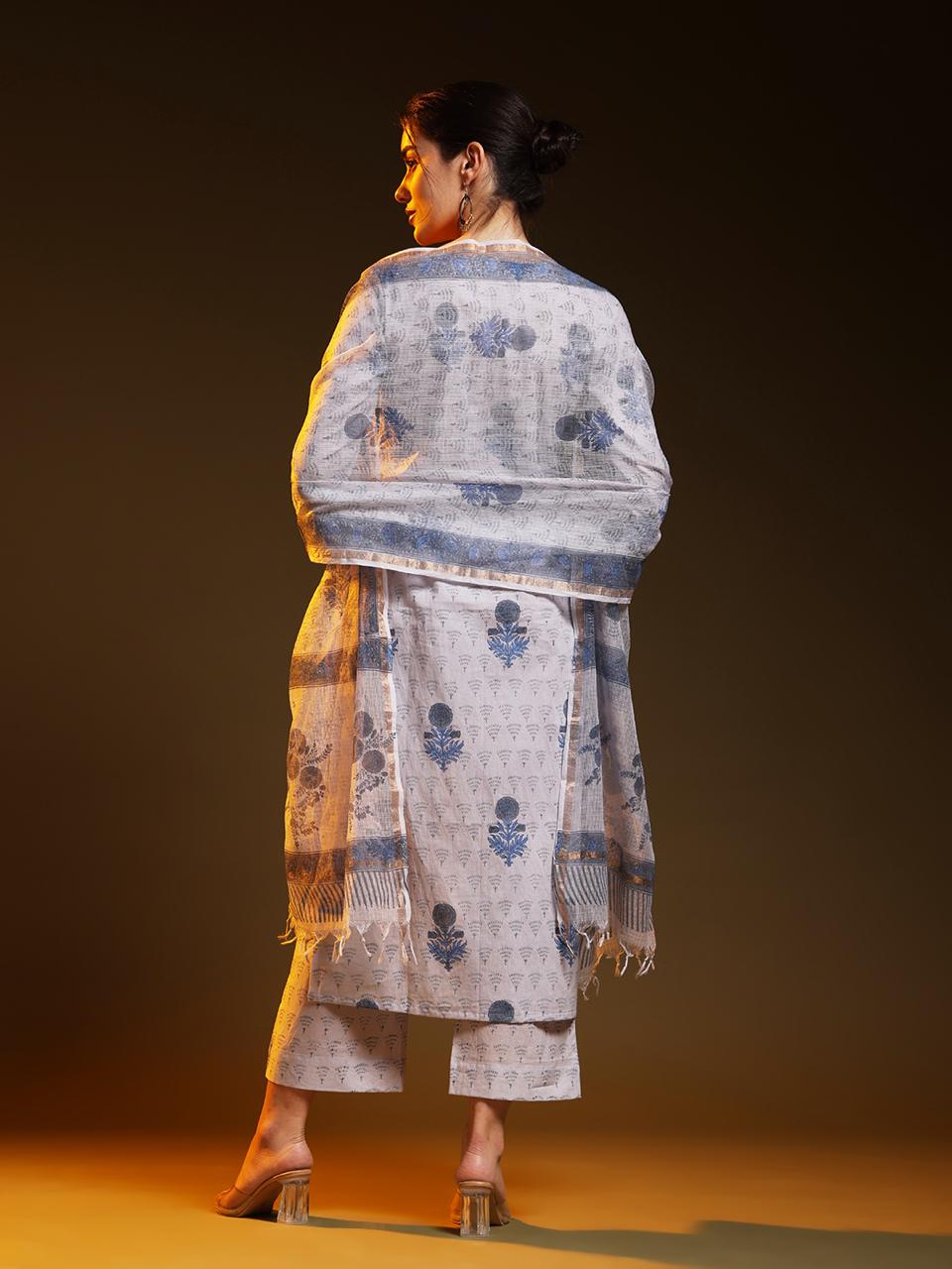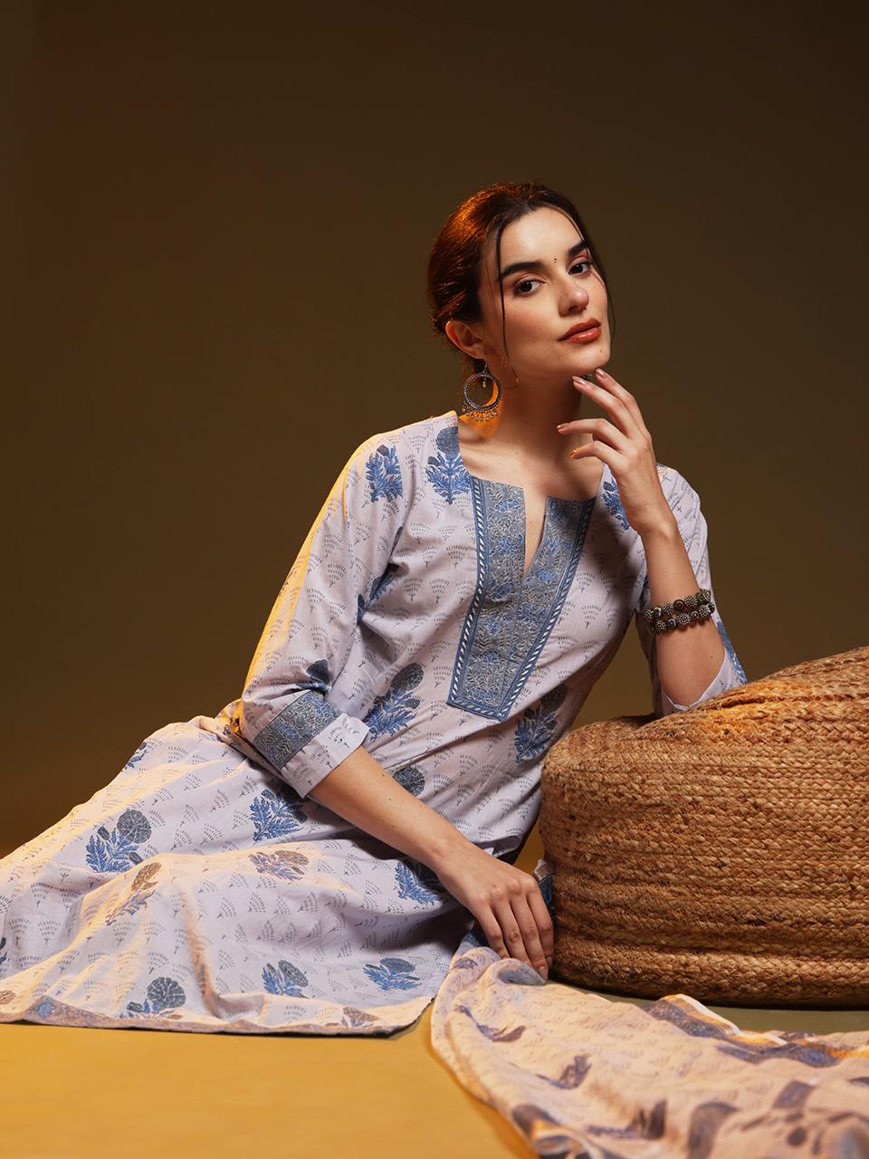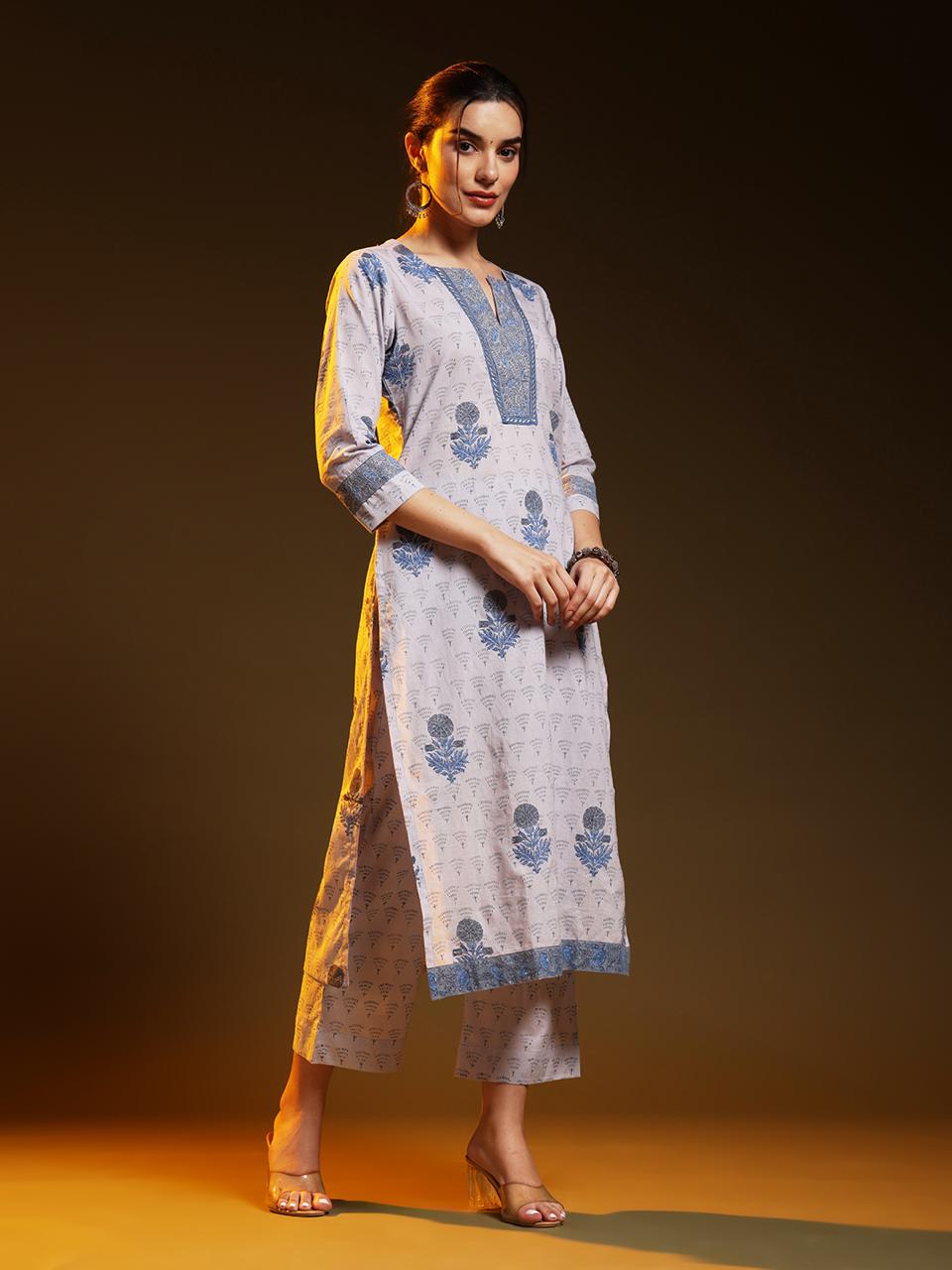 Elevate your ethnic wardrobe with this elegant grey full suit by Jaipuri Banno.