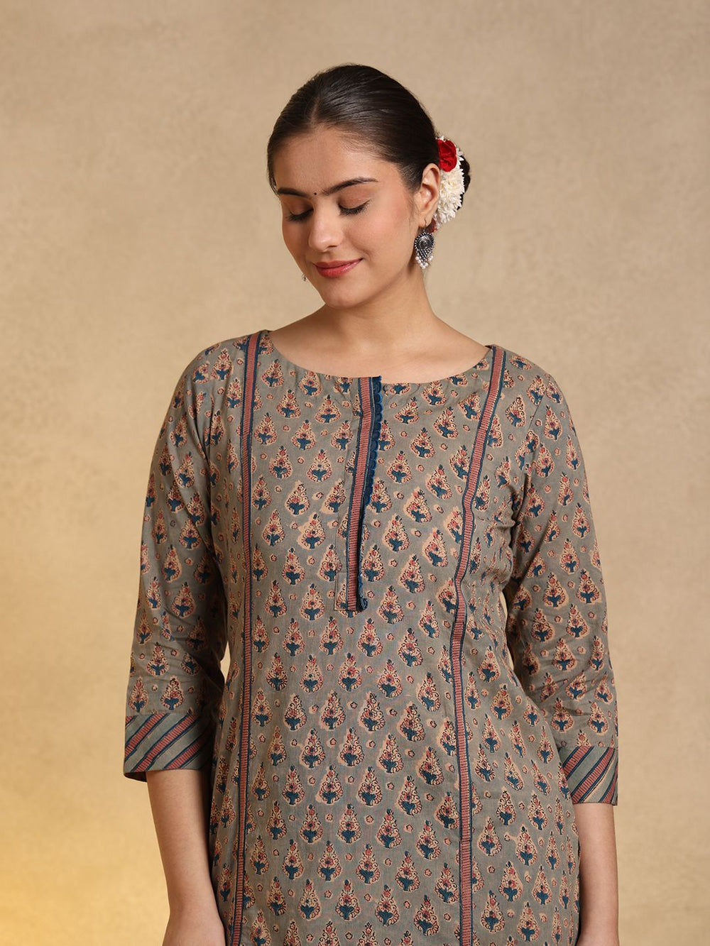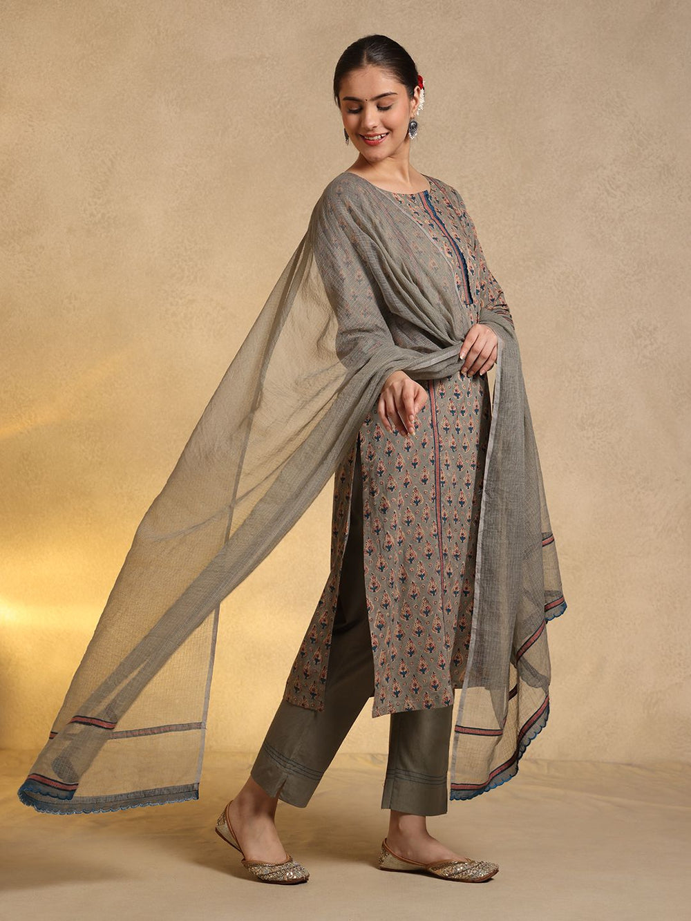 Grace meets tradition with our Grey Hand Block Print Suit by Jaipuri Banno. Crafted with authentic hand block printing, this elegant suit reflects the rich heritage of Rajasthani craftsmanship. The subtle grey tone combined with intricate traditional motifs creates a timeless and sophisticated look. Perfect for both casual gatherings and festive occasions, it offers comfort while maintaining effortless style. Pair it with minimal accessories to let the artistry truly shine.