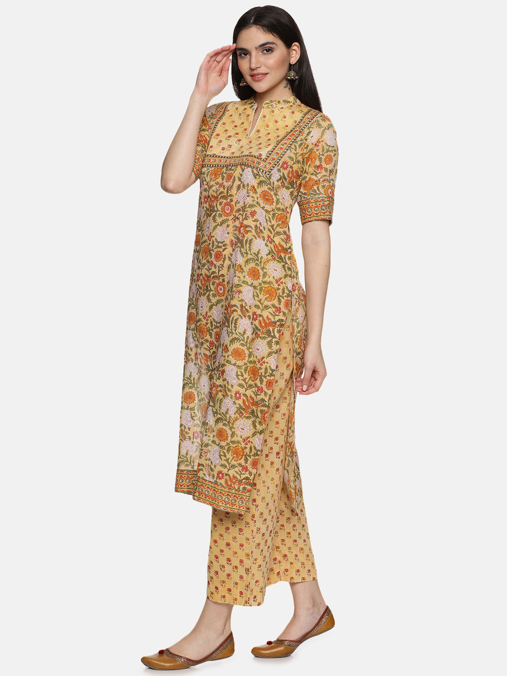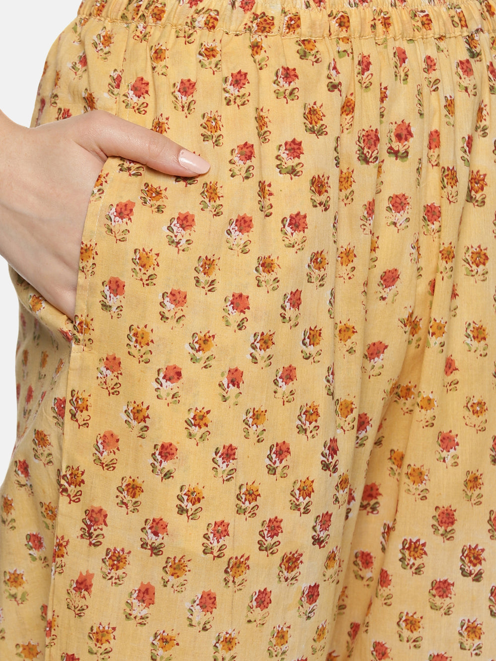 MUSTARD YELLOW FLORAL BLOCK PRINT STRAIGHT KURTA WITH PLAZZO