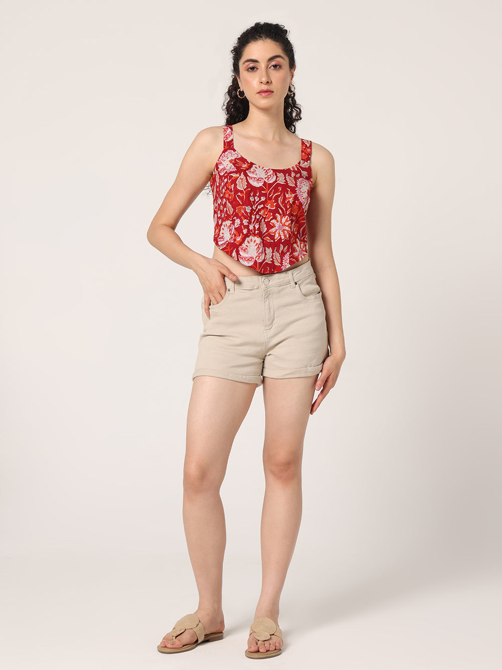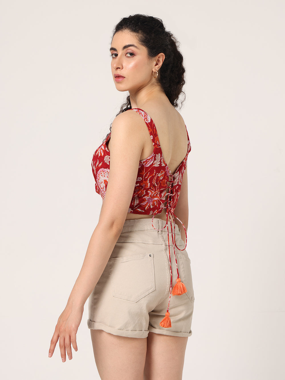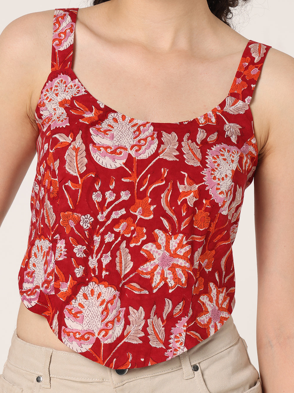 Make a statement in Jaipuri Banno stunning red hand block printed corset crop top. The intricate block prints and vibrant red hue create a perfect blend of traditional craftsmanship and modern style. Pair this crop top suit with jeans, shorts, skirt or leggings for a chic, everyday look. Adittional information =