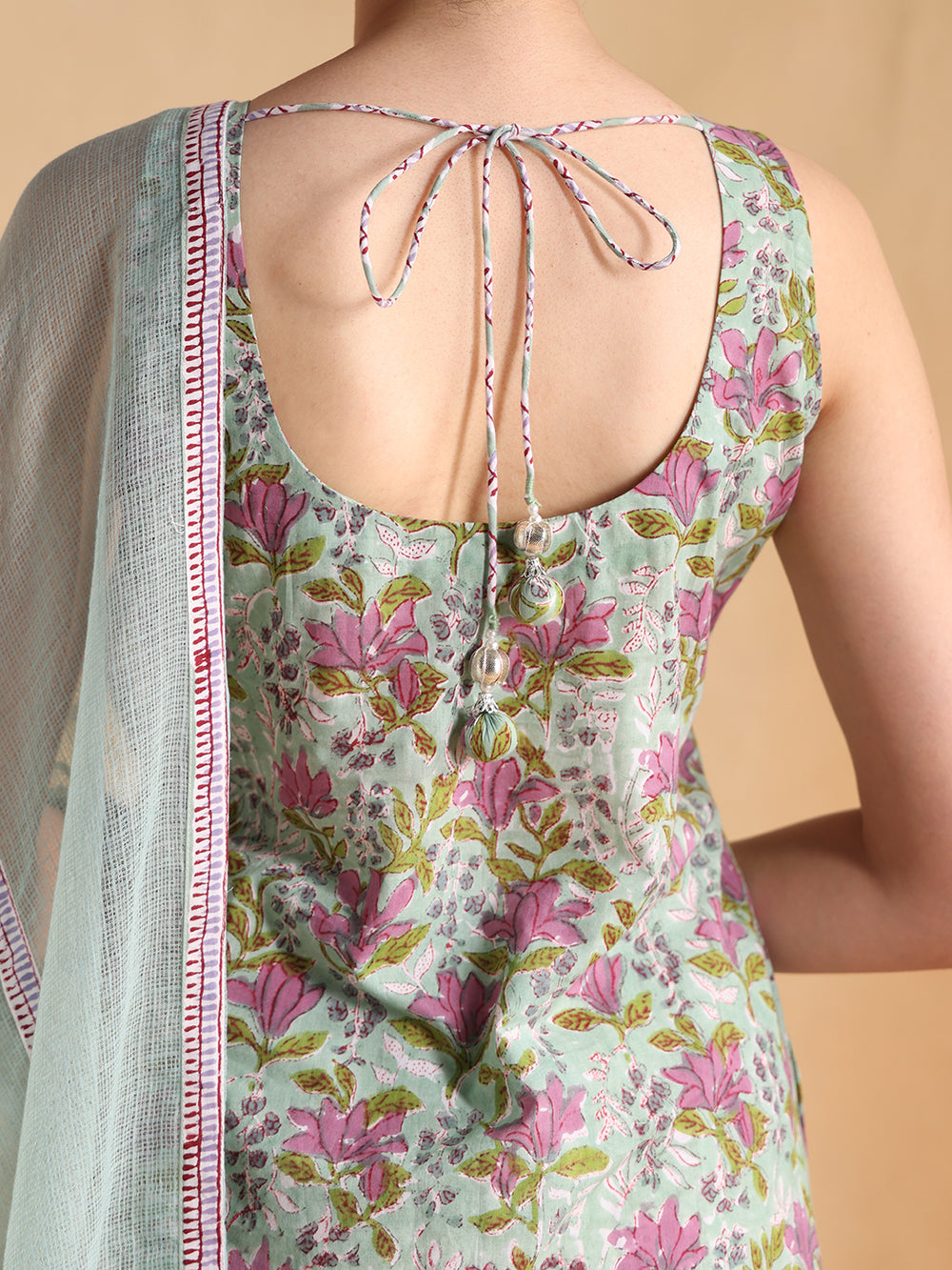 Elevate your style with Jaipuri Banno stunning sea green sleeveless suit, featuring a striking V-neck design. This beautiful ensemble is perfect for making a statement at any occasion. The vibrant sea green hue adds a touch of elegance and sophistication, making it a must-have in your wardrobe.