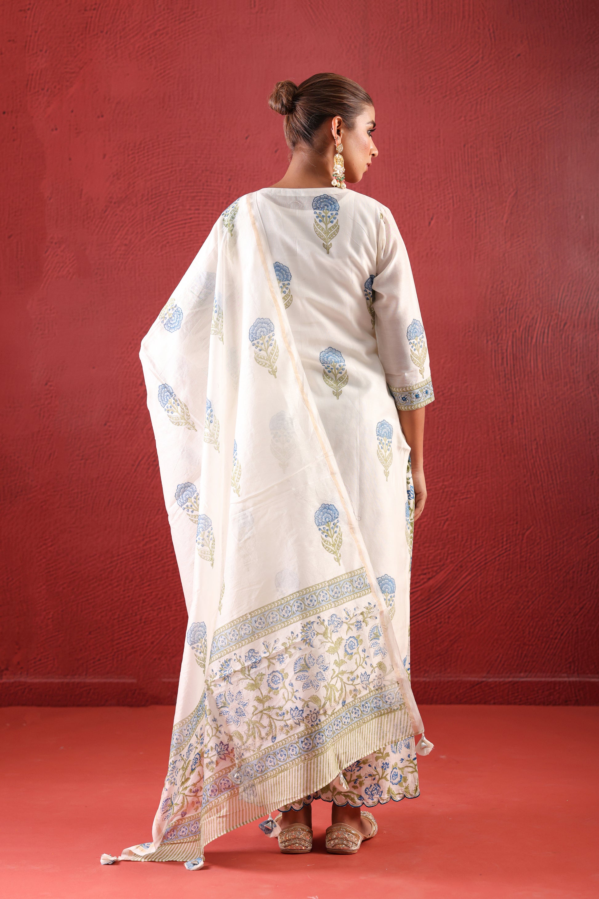 WHITE CHANDERI STRAIGHT LINE SUIT