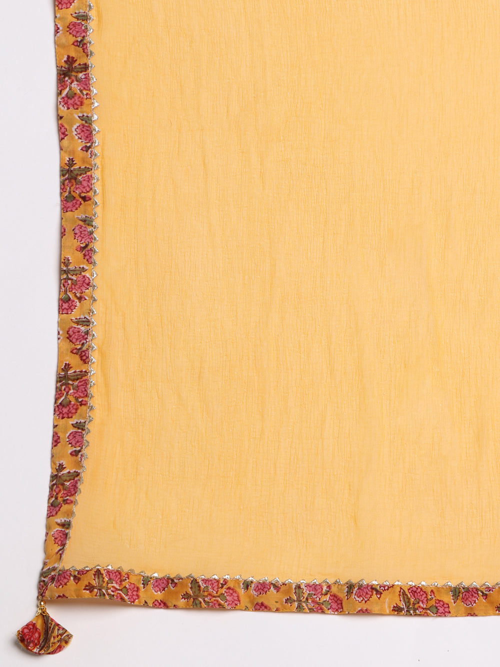 The Yellow Block Print Sharara Set features a vibrant yellow kurta with intricate block print patterns, paired with a flowy sharara bottom for a stylish, contemporary look. Made from soft cotton, it offers a comfortable fit with three-quarter sleeves. Perfect for festive or casual occasions, this set combines traditional craftsmanship with modern flair.